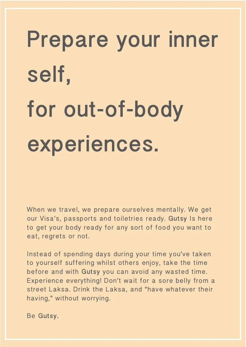 //Basic Brief: With Gutsy, you can say ‘yes’ to every food opportunity and get the most out of your trip by avoiding travel setbacks from illness.